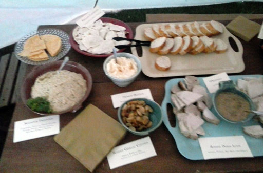 We repeated the menu, mostly, for a dual party for Sir Vey and Sir Ed McGuyver on Saturday night. Anything we had not placed out the night before was plated and sent, augmented by breads, spreads, salsas, chips, many cookies, and much beer and mead. I know that Lady Rose had a large hand in those provisions.